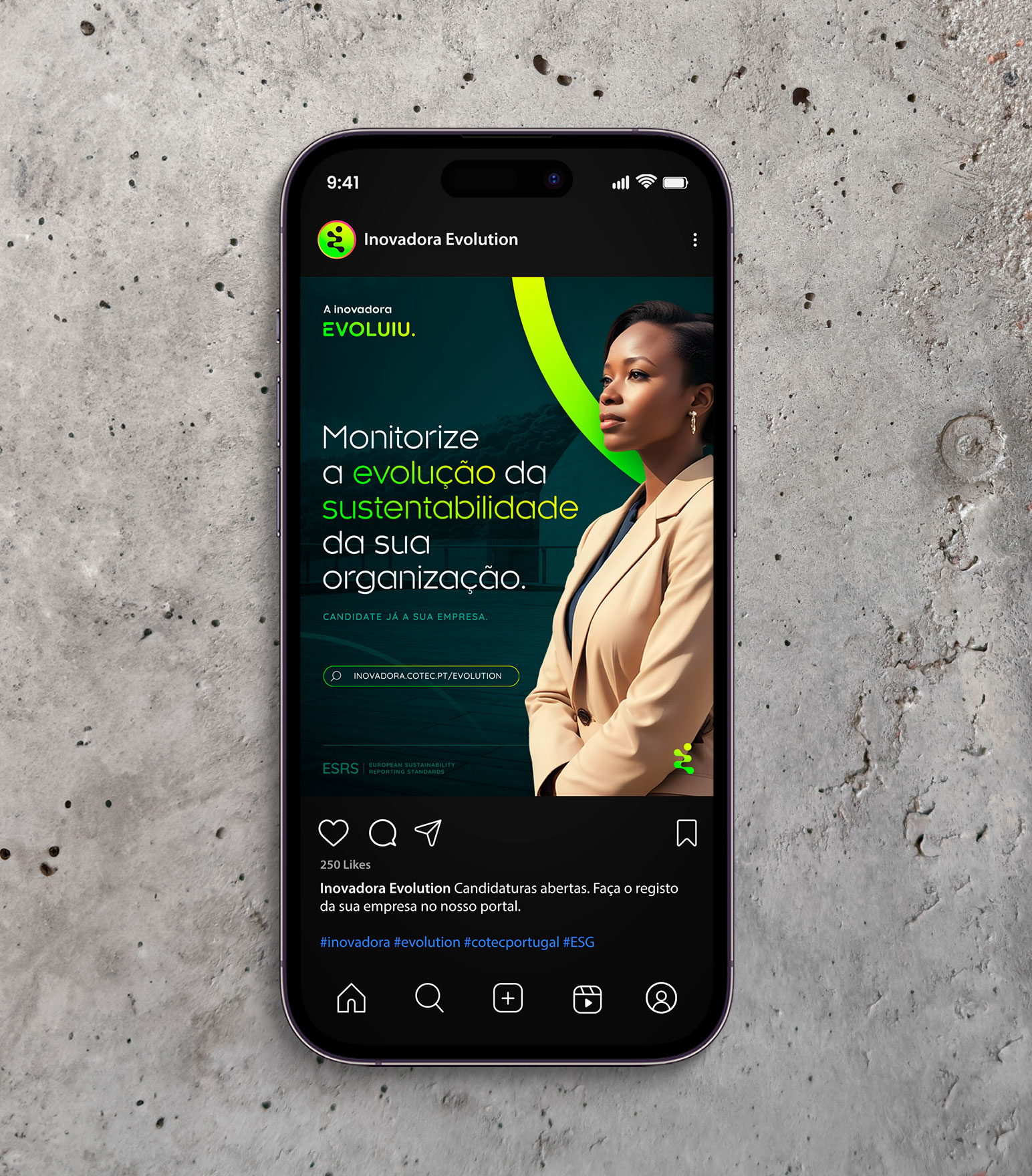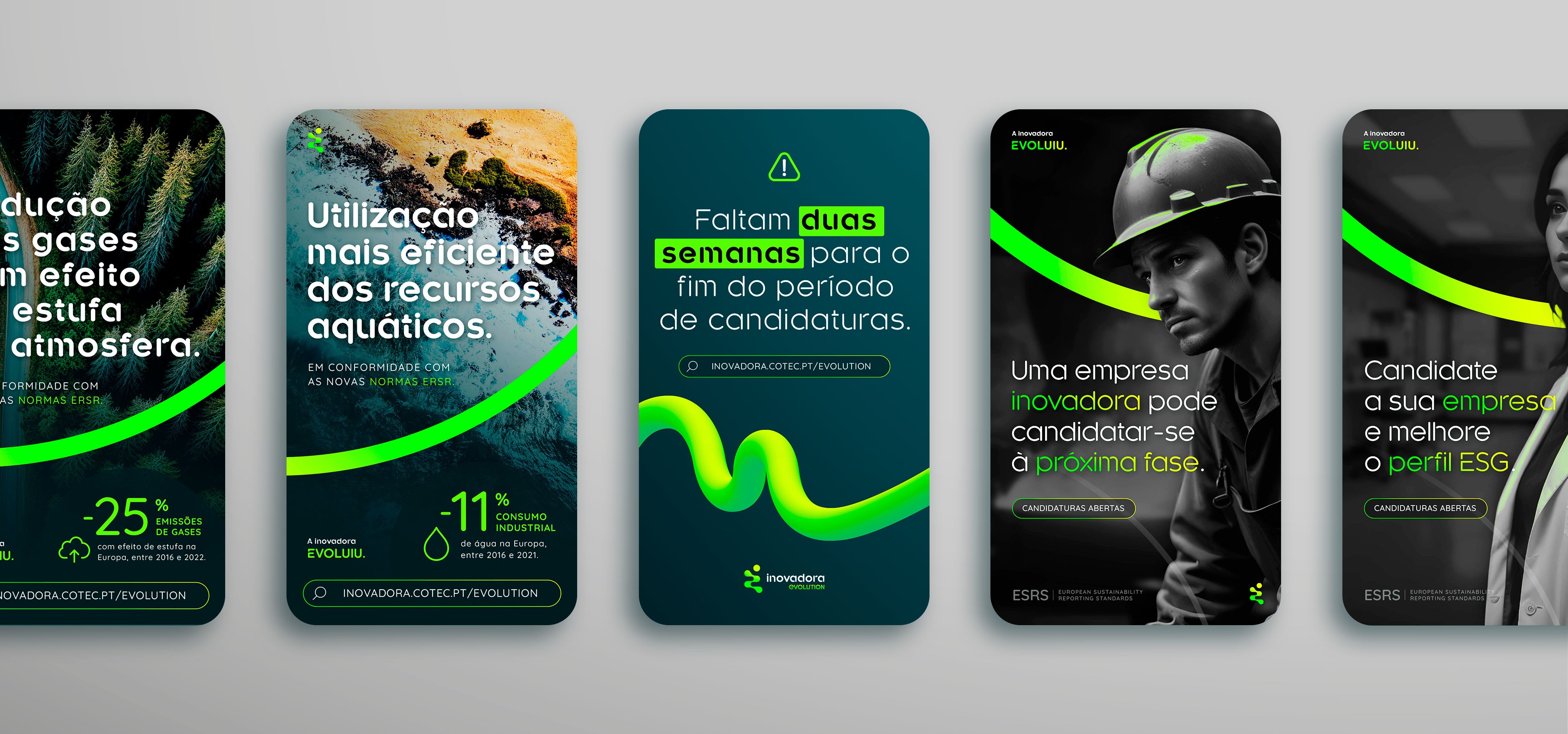 COTEC approached us to develop a new identity for their new certificate Inovadora Evolution, derived from the existing Inovadora - an european innovation and Sustainability certificate for businesses in compliance with the new updated ESG standards.